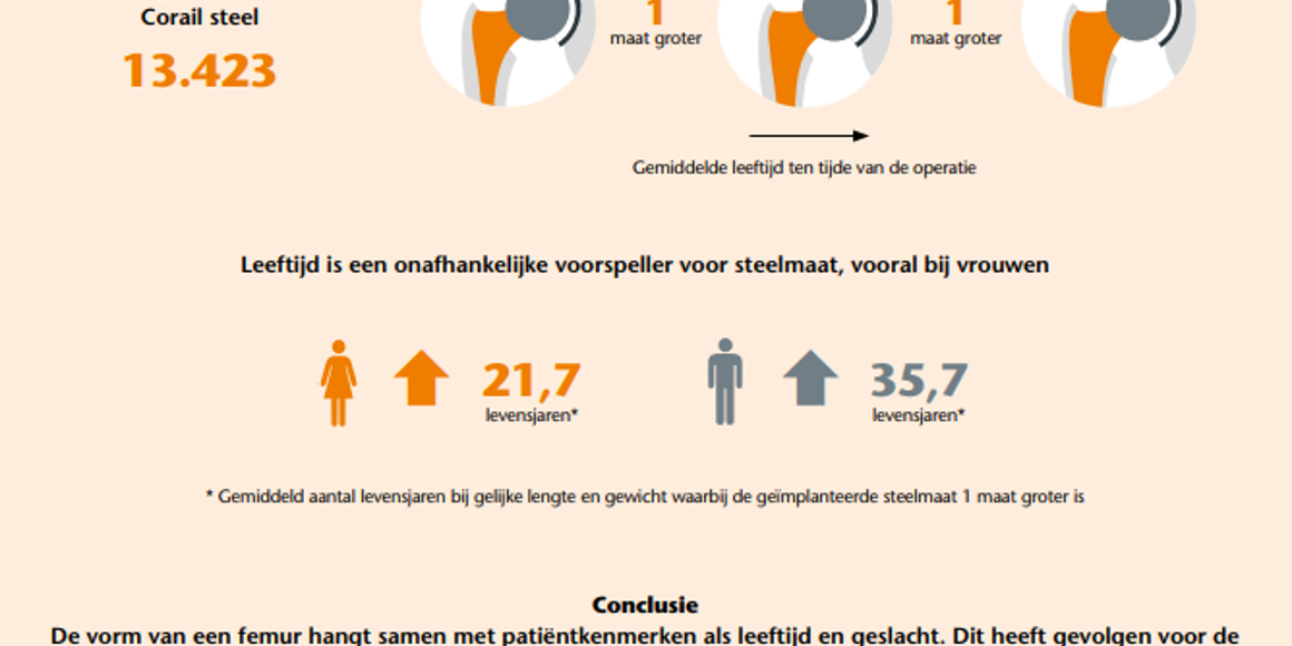 Het onderzoek is uitgevoerd met LROI-data door Hidde Veldman, Tim Boymans, Liza van Steenbergen en Ide Heyligers. Zij concludeerden dat de vorm van een femur samenhangt met patiëntkenmerken als leeftijd en geslacht. Dit heeft gevolgen voor de maat steel die geplaatst wordt bij ongecementeerde fixatie. Een dikkere steel is een stijver implantaat, dat mogelijk leidt tot meer stress-shielding (afbraak van bot door de veranderde belasting) en hieraan gerelateerde complicaties als loslating en periprothetische fracturen. Daarnaast kan een grotere steelmaat ook leiden tot een toegenomen hoogte dat leidt tot verlenging van het geopereerde been of een toegenomen offset (horizontale afstand tussen de as van het femur en het centrum van de femurkop) dat leidt tot een teveel aan spanning en eventuele pijnklachten. In hoeverre deze effecten in de praktijk voorkomen zal vervolgonderzoek moeten aantonen. Nauwkeurige preoperatieve planning en peroperatieve controle zijn essentieel bij heupprothesiologie.