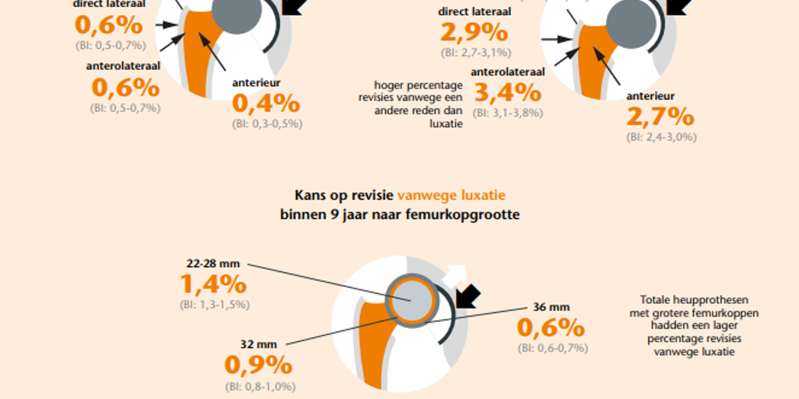 Het onderzoek is uitgevoerd met LROI-data door Liza van Steenbergen, Ilse de Reus, Gerjon Hannink, Stephan Vehmeijer, Wim Schreurs en Wierd Zijlstra. Zij concludeerden dat het overall risico op revisie van een totale heupprothese laag is voor alle bestudeerde chirurgische benaderingen. Anterieur geplaatste totale heupprothesen hebben het laagste percentage revisies vanwege luxatie en het laagste overall revisiepercentage. De posterolaterale benadering hangt samen met een hogere kans op revisie vanwege luxatie, maar met een lagere kans op revisie vanwege elke andere reden. Femurkoppen van 32 en 36mm verlagen de kans op revisie vanwege luxatie voor alle chirurgische benaderingswijzen. Deze resultaten helpen de orthopedisch chirurg met de keuze van benadering en keuze van femurkopgrootte.